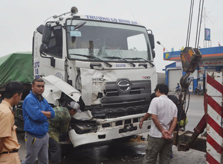 Trước đó, vào khoảng 5h cùng ngày (8/4), xe đầu kéo BKS 37C -18280 chạy trên QL1A, khi đến đoạn qua xã Diễn Thịnh (Diễn Châu, Nghệ An) bất ngờ tông vào xe công nông đi phía trước không có đèn báo.