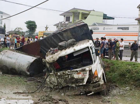 Hậu quả, cả hai xe tải lật nhào xuống ruộng, bị hư hỏng nặng, tài xế xe tải mang BKS 37S – 0984 được đưa đi cấp cứu tại bệnh viện trong tình trạng nguy kịch.