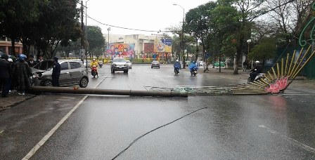 Tại một diễn biến khác, vào trưa 12/3 trên đường Minh Khai (TP.Vinh, Nghệ An) đoạn trước Bưu điện tỉnh Nghệ An, xe ô tô con mang BKS 37A.03438 đang chạy với tốc độ cao bất ngờ mất lái, đâm vào cột đèn đường.