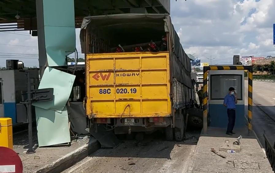 Xe tải tông sập cabin trạm thu phí cao tốc TP HCM - Trung Lương