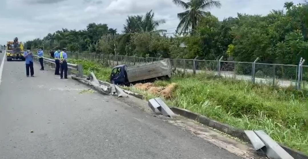 Khi đến đoạn Km34, đoạn thuộc địa bàn TP Tân An, tỉnh Long An, bất ngờ xe tải mất kiểm soát chao đảo tông sập hàng loạt taluy trên đường. Xe tải ao ra khỏi đường cao tốc sau đó rồi rơi xuống ven đường làm cho dưa hấu trên xe đổ tràn lan ra ngoài.