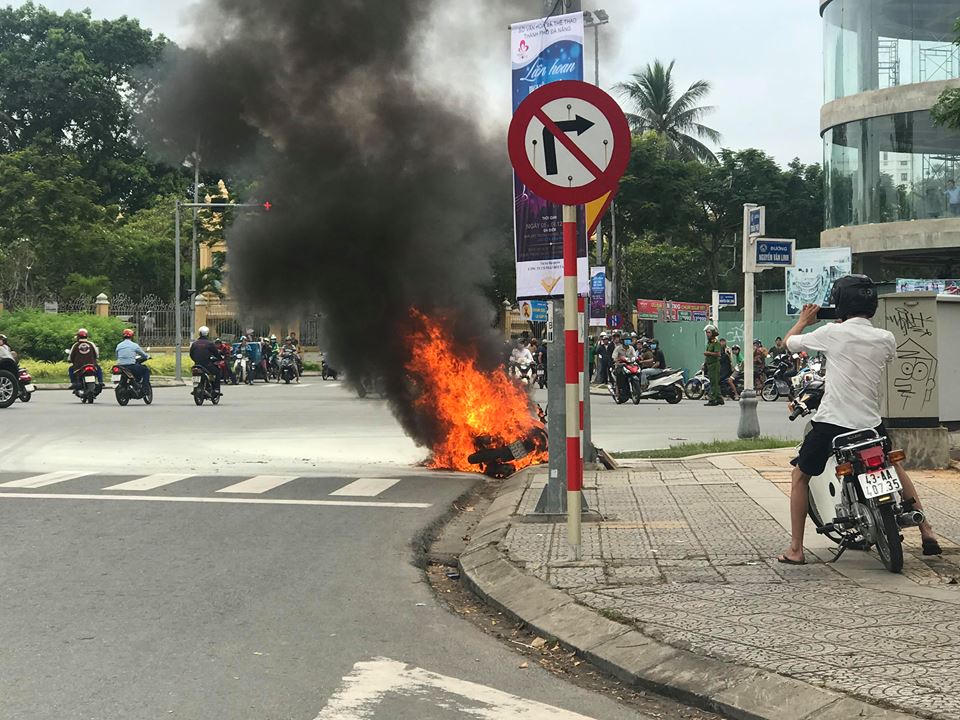 Thời điểm trên, chị Đặng Ngọc Phương Uyên (SN 1993, ngụ phường Phước Ninh, quận Hải Châu) điều khiển xe tay ga hiệu Air Blade màu trắng đỏ mang BKS 43C1-231.3X đang lưu thông trên đường Trần Phú. Khi xe chạy đến giữa ngã tư nêu trên, chị Uyên phát hiện phần thân xe có lửa kèm khói bốc lên nên hốt hoảng dừng xe rồi bỏ chạy lên lề đường.