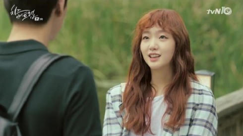 Một cách phối khéo léo hơn với caro của Park Hae jin và họa tiết chiếc lá xếp theo kiểu caro của Kim Go Eun.