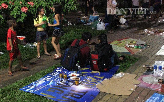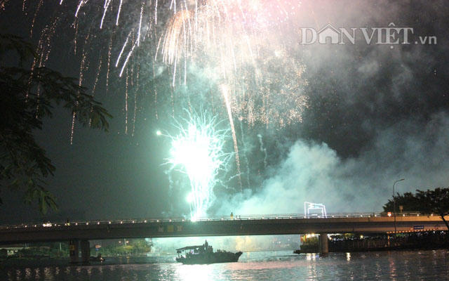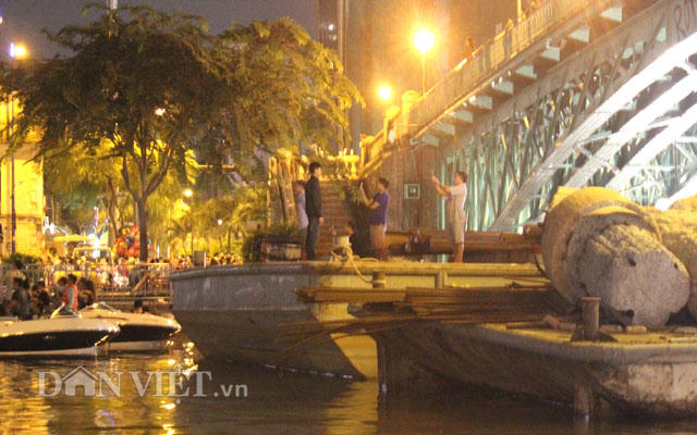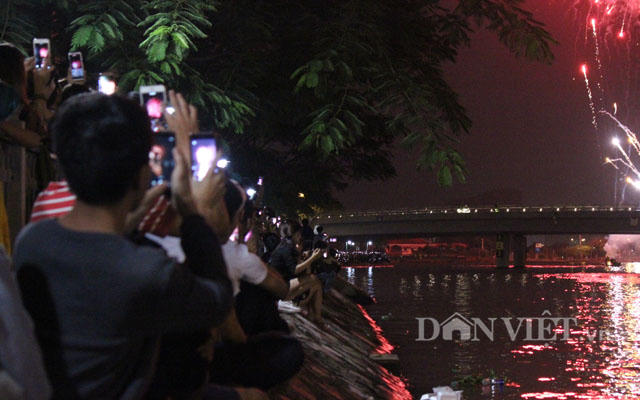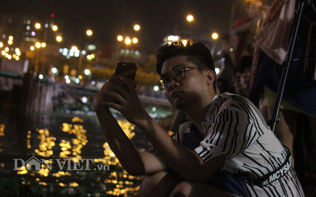 Nhưng lực lượng bảo vệ không cho lên cầu nên mọi người tìm mọi cách để chọn khoảng trống thích hợp nhất từ trên đường, bờ sông, trên thuyền, kể cả trên thành cầu.