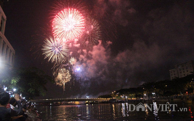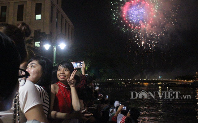 Tiết mục bắn pháo hoa được chờ đợi nhất trong đêm giao thừa tết dương lịch 2018 thu hút hàng vạn người dân đón xem với đủ tư thế, từ trên bờ, dưới nước.