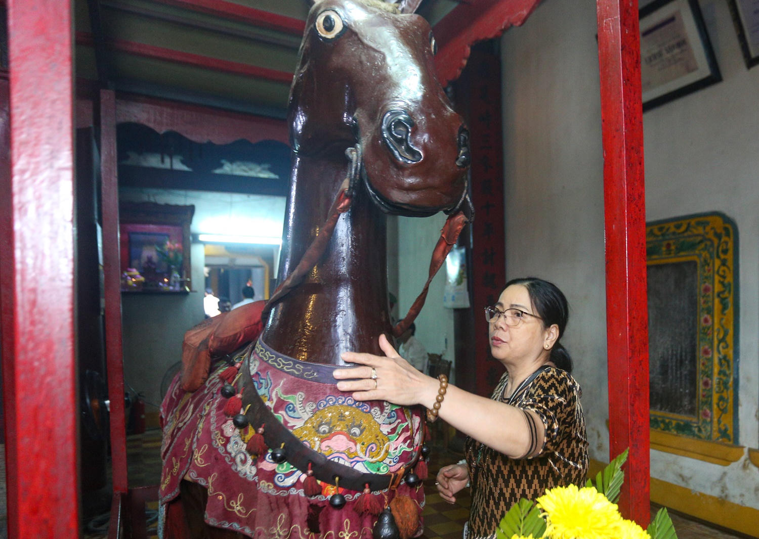Do đó, rất nhiều người đến đây, ngoài thắp hương đủ các điện, họ còn vái lạy và liên tục sờ vào ngựa gỗ để cầu may.