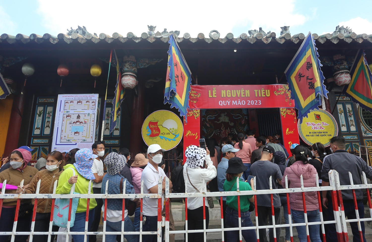 Ngày 6/2 (16 tháng Giêng âm lịch), hàng nghìn người dân và du khách từ khắp nơi đã nườm nượp đổ về phố cổ Hội An (Quảng Nam), chờ xếp hàng đông nghịt để được vào dâng hương, đi lễ Chùa Ông.