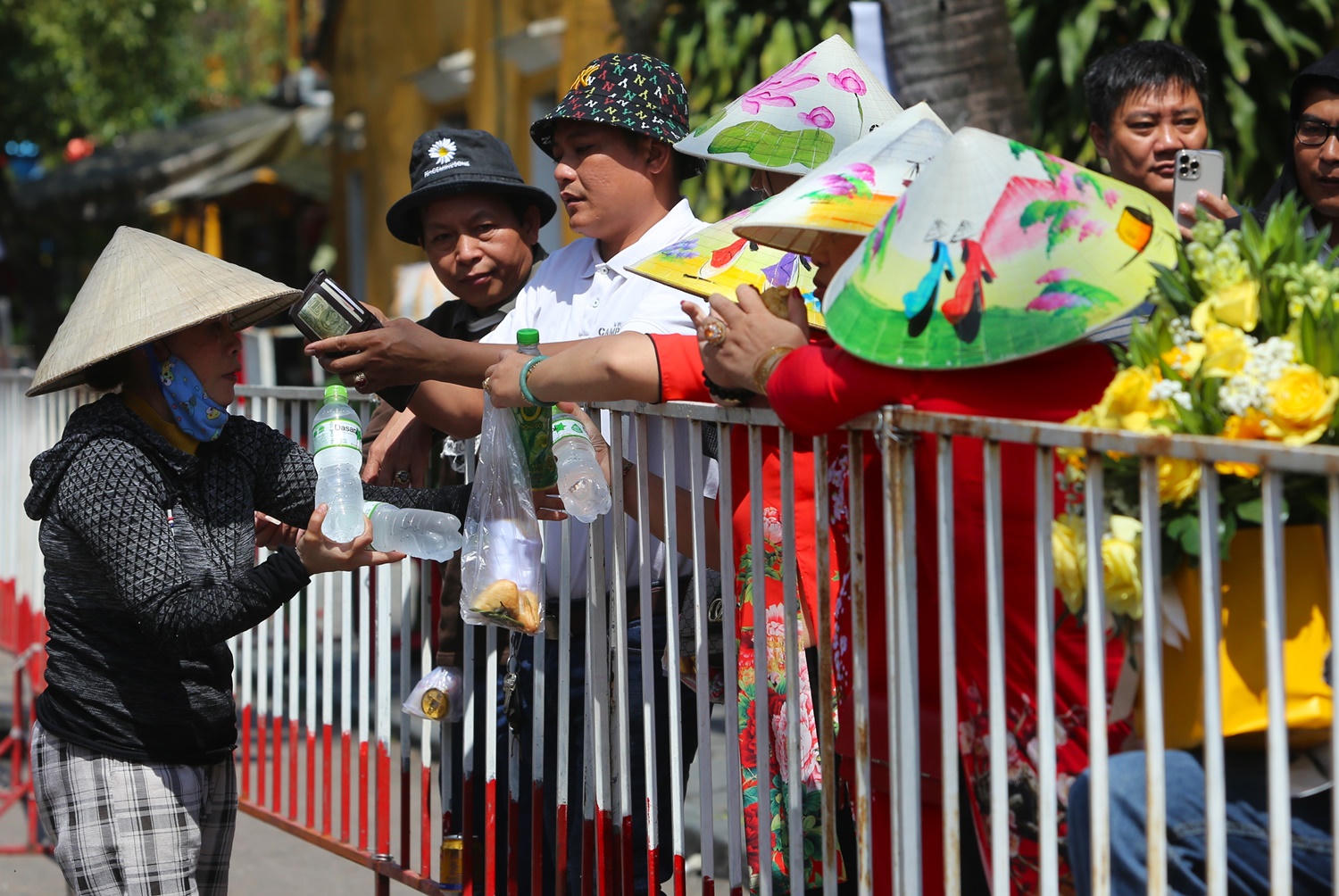Càng về trưa, thời tiết tại Hội An đang nắng gắt, nhưng hàng nghìn người vẫn nhẫn nại xếp hàng chờ đợi được vào trong chùa dâng hương.