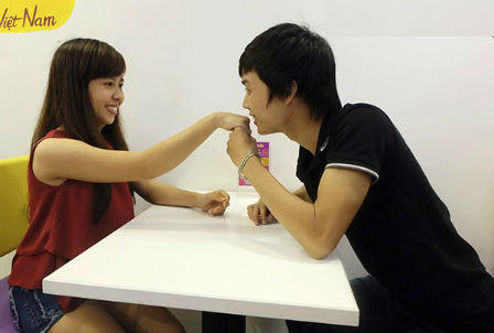 Đôi nam nữ có vẻ chừng là sinh viên đại học, cô gái còn rất trẻ. Nhân viên đưa máy lên chụp, bất chợt cô gái lúng túng, mặt đỏ bừng. Chàng trai cũng căng thẳng không kém, lóng ngóng chút xíu làm đổ ly trà đá. Thấy vậy, cả quán vỗ tay hò reo: “Hôn đi, hai, ba, hôn đi…”.