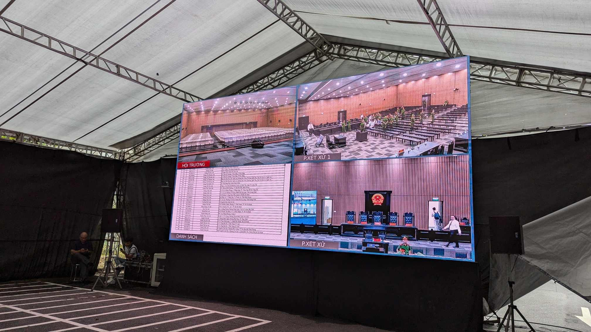 Tòa dựng rạp ngoài sân để phục vụ xét xử. |