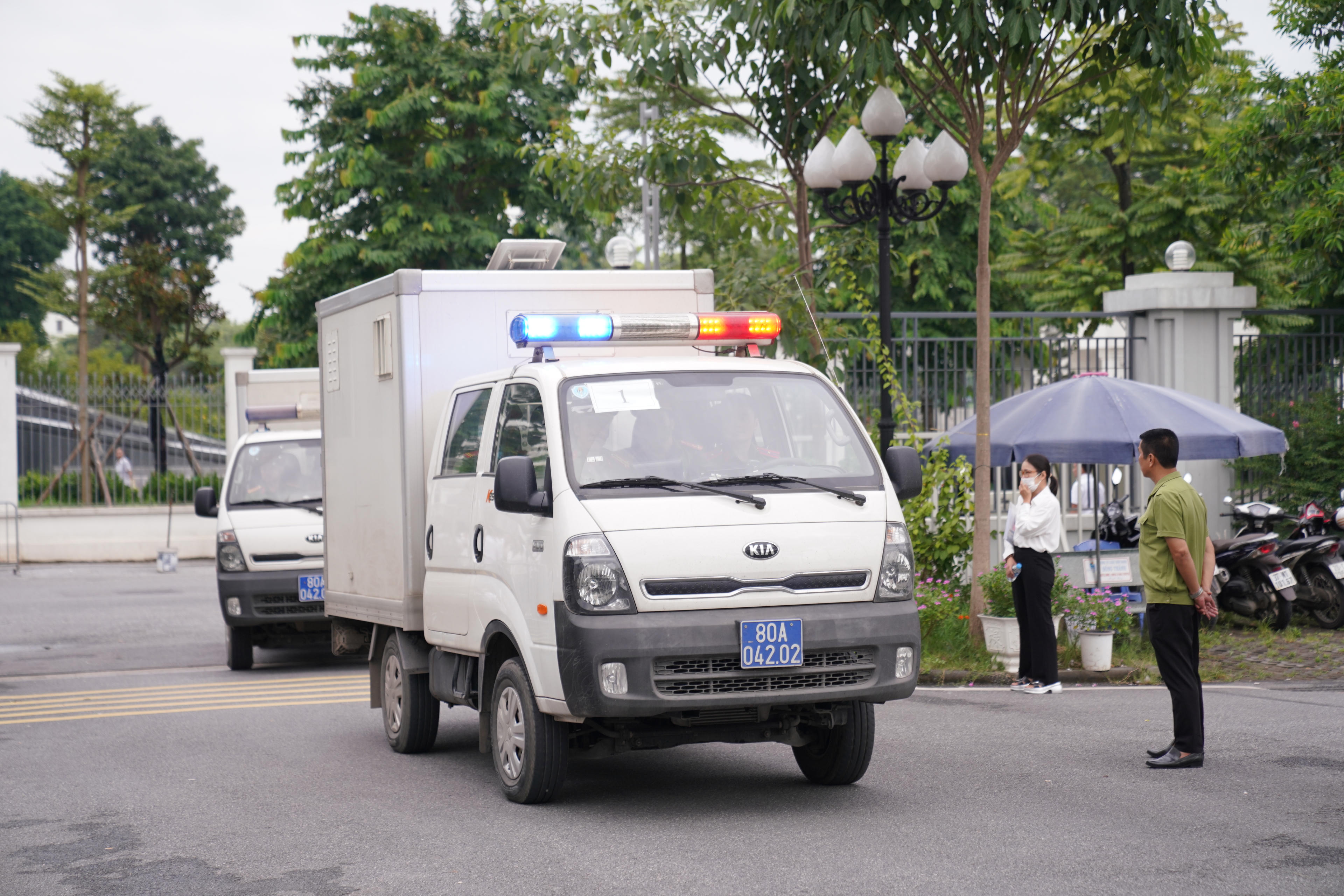 Xe dẫn giải các bị cáo đến tòa. |