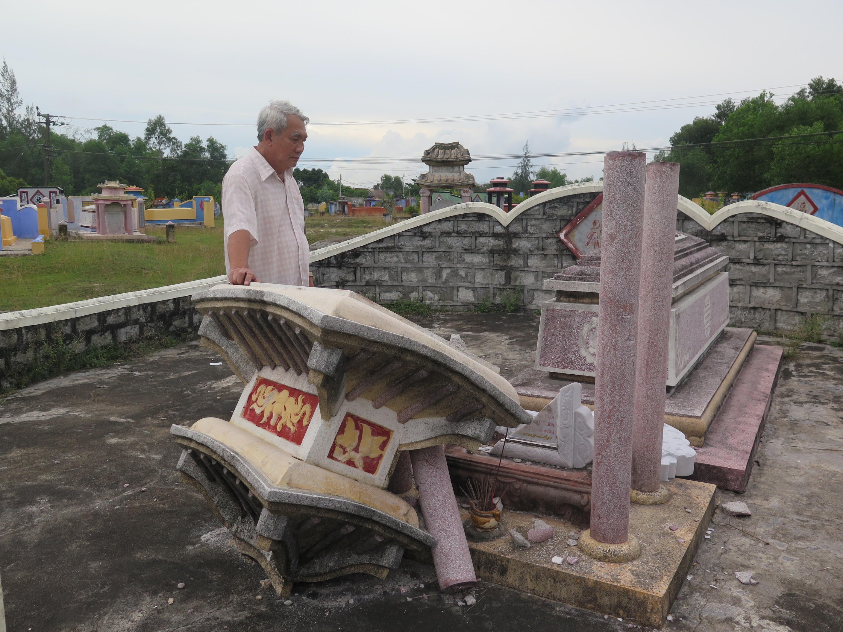 Kèm theo tin nhắn là hình ảnh ngôi mộ bị đập nát. Khi ra nghĩa địa để xem thực hư, ông Anh bàng hoàng và đau đớn khi nhìn thấy mộ của cha mình không còn nguyên vẹn. Quá uất ức, ngày 12/6/2017, ông Anh làm đơn kêu cứu đề nghị Công an huyện Thăng Bình xử lý vụ việc.
