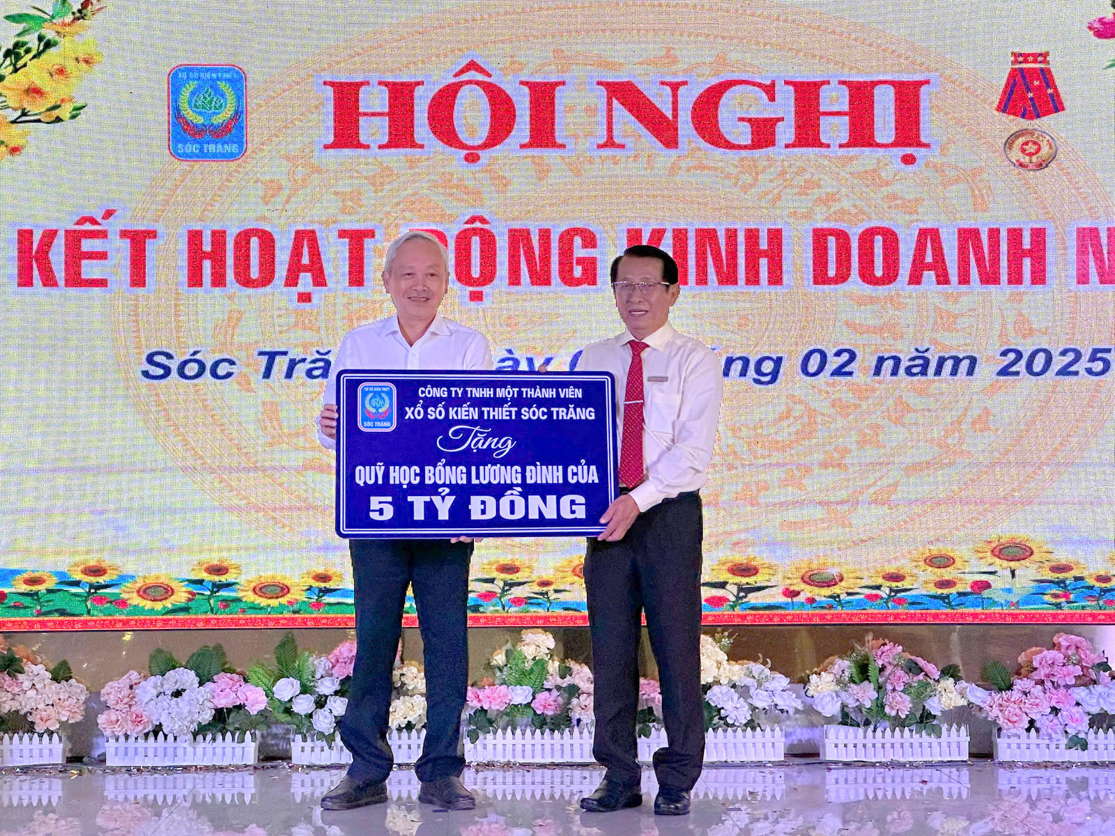 Ông Lâm Dủ Nhơn - Chủ tịch Công ty XSKT Sóc Trăng trao 5 tỷ đồng gây quỹ học bổng khuyến học Lương Định Của |