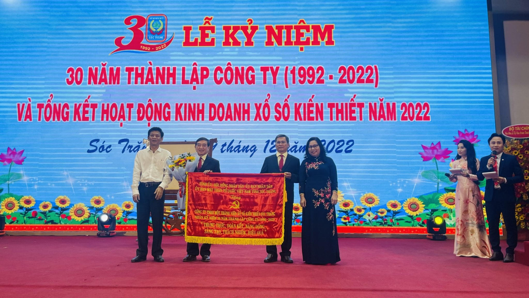 Ngày 19/12, Công ty TNHH Một thành viên XSKT Sóc Trăng (gọi tắt là Công ty) đã long trọng tổ chức buổi lễ kỷ niệm 30 năm thành lập công ty (1992 – 2022) và tổng kết hoạt động kinh doanh xổ số kiến năm 2022. Năm đánh dấu một chặng đường, cột mốc quan trọng trong quá trình hình thành và phát triển của Công ty.