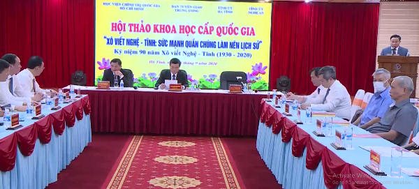 (PLVN) - Ngày 6/9, tại thành phố Hà Tĩnh (tỉnh Hà Tĩnh), Học viện Chính trị Quốc gia Hồ Chí Minh phối hợp với Ban Tuyên giáo Trung ương và Tỉnh ủy Hà Tĩnh, Nghệ An tổ chức Hội thảo khoa học cấp quốc gia “Xô viết Nghệ - Tĩnh: sức mạnh quần chúng làm nên lịch sử” hướng tới kỷ niệm 90 năm Xô viết Nghệ - Tĩnh (12/9/1930 - 12/9/2020).