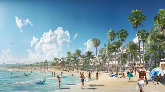 Khu Du lịch, dịch vụ thương mại Vịnh trung tâm Cát Bà mang tới bãi tắm nhân tạo lớn cho đảo Cát Bà. Ảnh phối cảnh minh họa |
