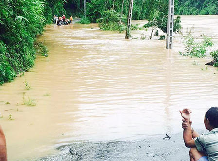Nước lũ trên sông Nậm Nơn đang lên nhanh khiến tuyến quốc lộ 7 (nối từ Quốc lộ 1A sang Lào) bị tê liệt hoàn toàn. Sáng nay, đoạn quốc lộ 7 qua xã Tam Quang (huyện Tương Dương) bị ngập lụt một số điểm, trong đó có điểm ngập sâu trên 1m, các phương tiện phải ngừng lưu thông, chờ nước rút...