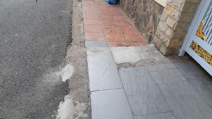 Ông V. giải thích do gạch lát trước nhà bị vỡ nên kêu thợ đến trám xi măng, không yêu cầu gắn đinh. Tuy nhiên, không hiểu sao thợ lại tự ý gắn thêm đinh lên phần xi măng mới trám đó, đến khi công an mời lên, ông V. mới biết sự việc. Đến tối 23/2, ông V. đã cho đập phần đinh nhọn gắn trên vỉa hè trước nhà.