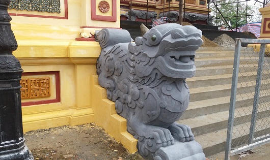Ngày 11/1, theo ghi nhận của PV báo PLVN hiện công trình này vẫn đang được các đơn vị thi công thực hiện các công đoạn còn lại. Sau một thời gian trùng tu hiện công trình này đang được sơn lên một màu vàng hoàn toàn lạ lẫm với người dân, không còn nét cổ kính như trước đây.