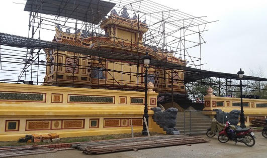 Phần lan can, trụ biểu, bến thuyền, trụ lan can cổng vào cũng được bóc lớp vữa bong rộp, đục phần gạch bị mủn mục, nứt gãy để xây tu bổ và gia cường, gắn lại ngói dương men, trang trí họa tiết, sành sứ… Ngoài ra, dự án còn làm lại hệ thống đèn chiếu sáng nghệ thuật ở mái, tường bia, trụ biểu với 67 bóng. Toàn bộ công trình được đầu tư với kinh phí khoảng 700 triệu đồng, dự kiến hoàn thành trong tháng 1/2017.