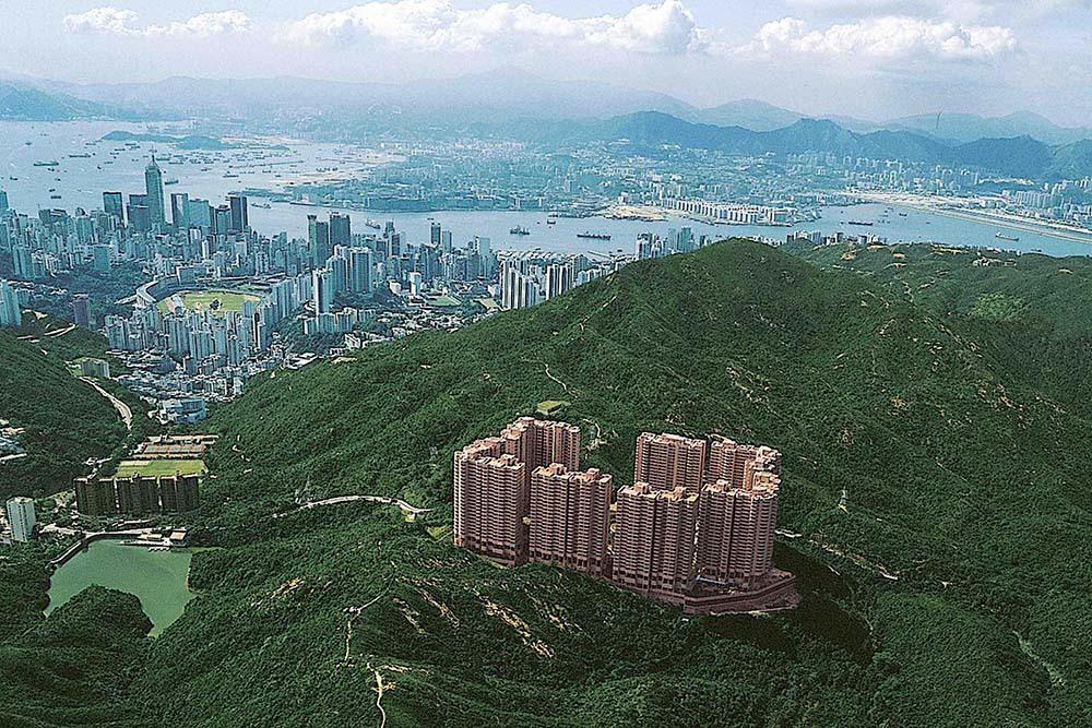 | Khu chung cư tọa lạc trên núi, bao quanh là công viên quốc gia Tai Tam yên bình, nhìn ra bờ biển phía Nam đặc khu hành chính Hong Kong (Ảnh Wiki) |