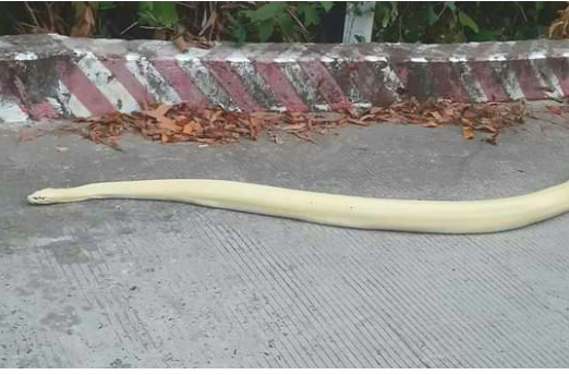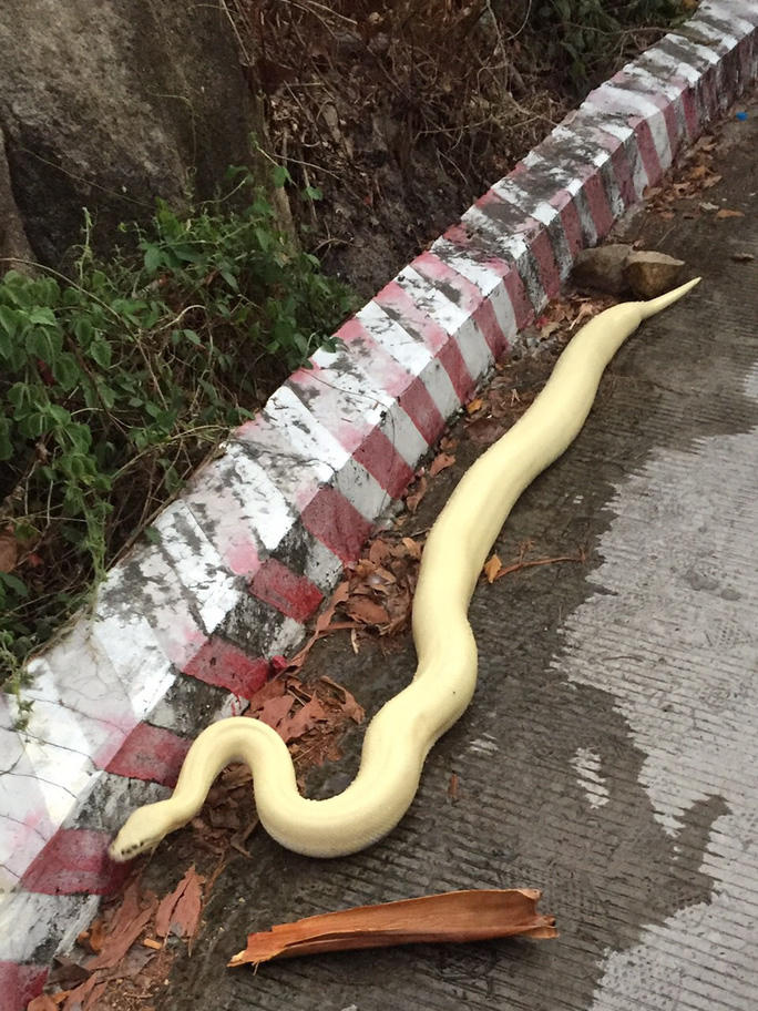 Cơ quan chức năng xác định con trăn bạch tạng xuất hiện trên đường lên đỉnh núi Sam (tỉnh An Giang) có khả năng do sổng chuồng rồi bò đi tìm nguồn nước uống.