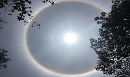Khoảng 10h30 hôm nay, 9/5 (14/4 âm lịch), cũng trùng với mùa Lễ Phật Đản 2017, trên bầu trời xứ Huế xuất hiện ánh hào quang tạo vòng tròn xung quanh mặt trời.