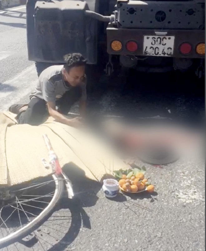 Cú va chạm làm cho người phụ nữ và chiếc xe đạp bị cuốn vào gầm. Hậu quả nạn nhân bị bánh xe container cán tử vong.