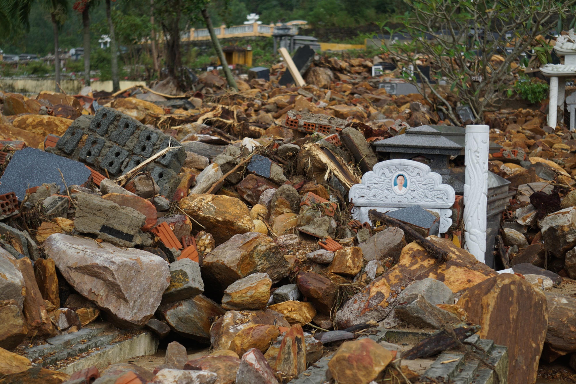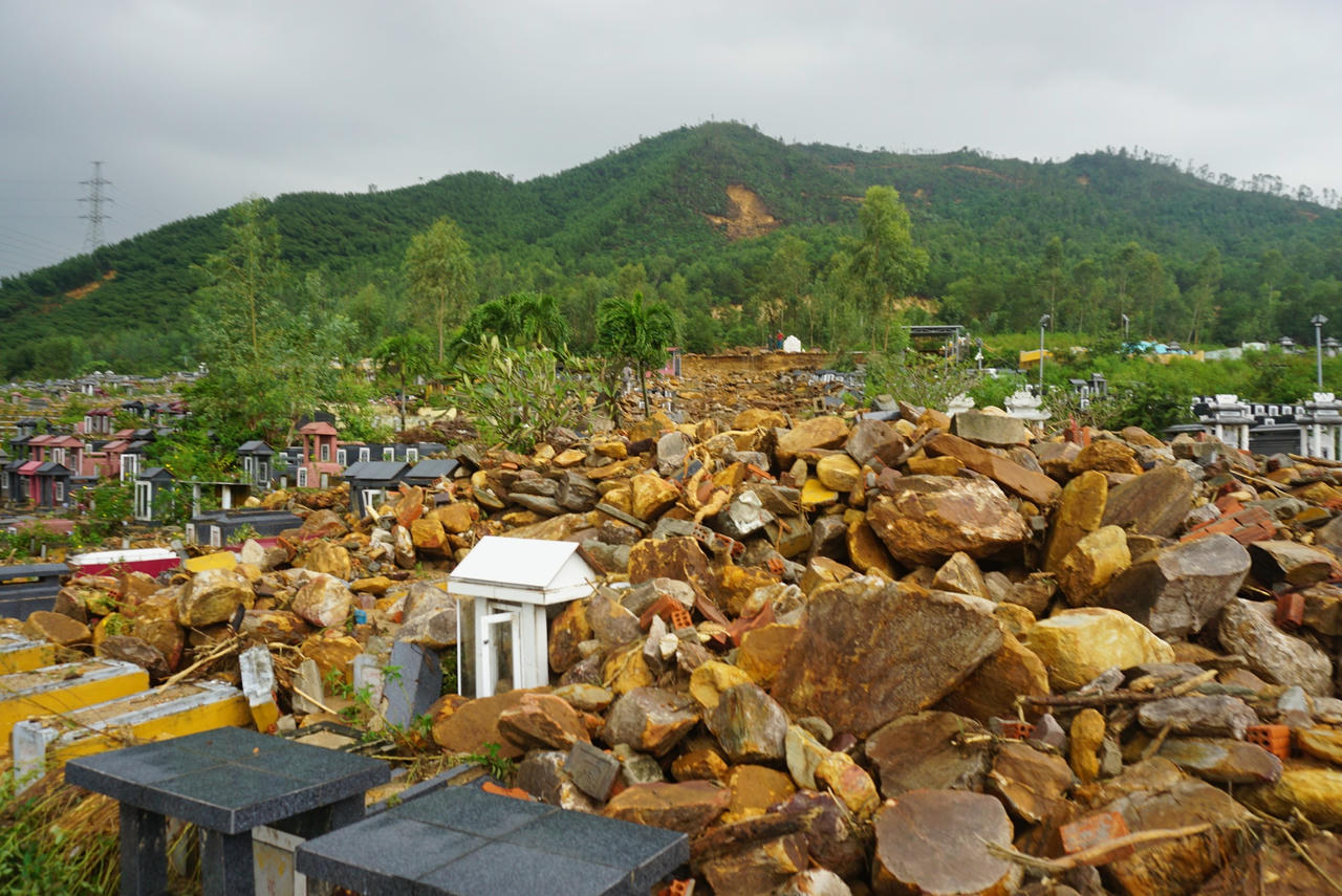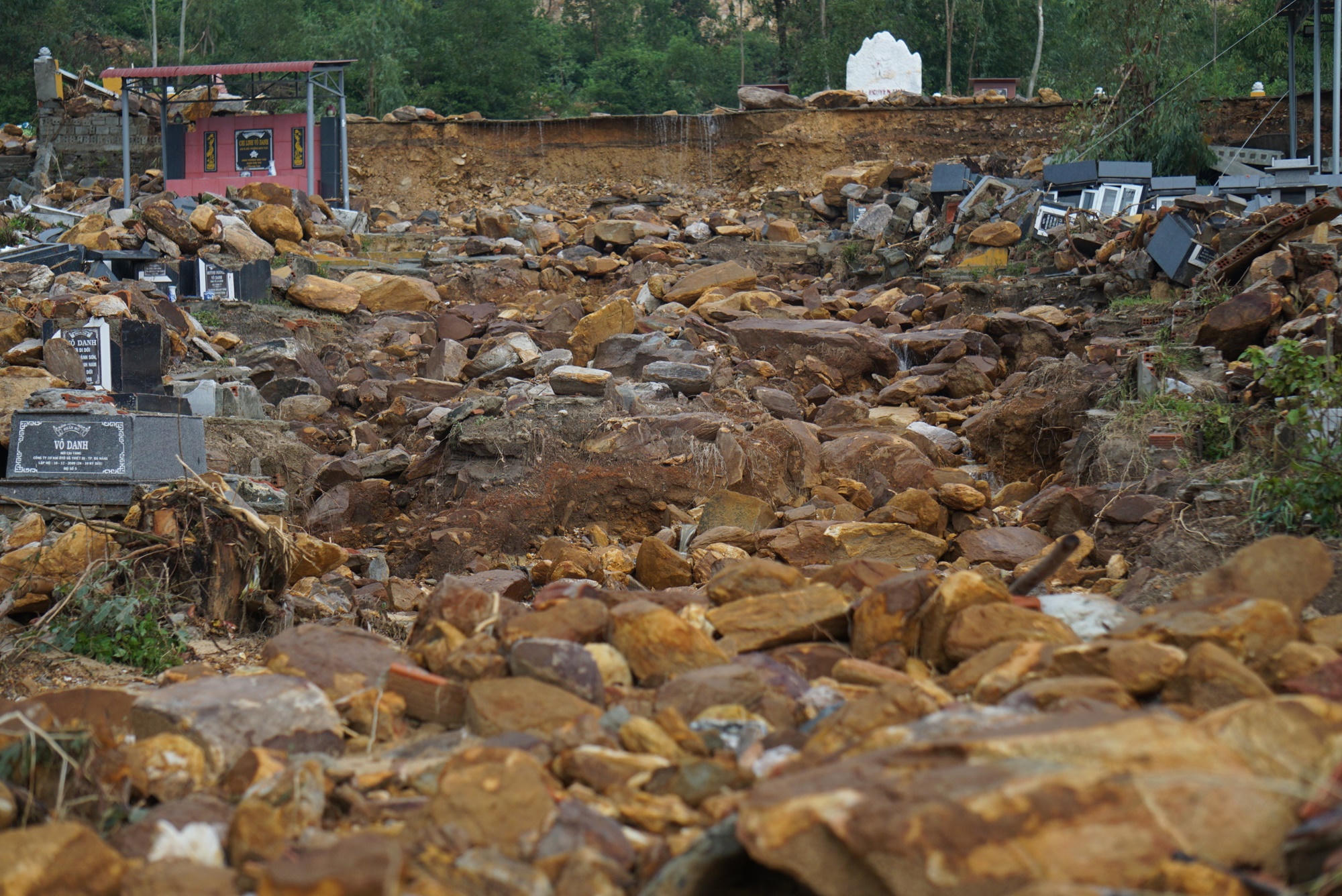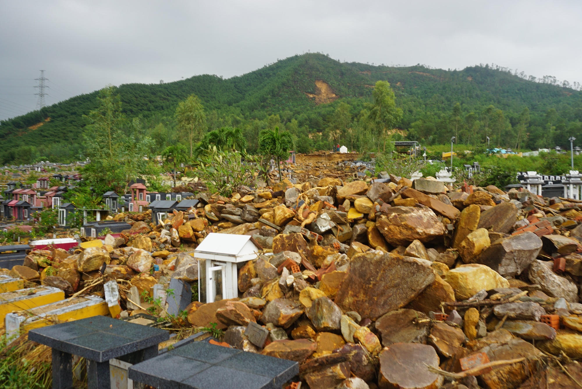 Hàng nghìn m3 đất đá từ trên núi sạt lở, tràn xuống khu vực này khiến hàng nghìn ngôi mộ bị vùi lấp.