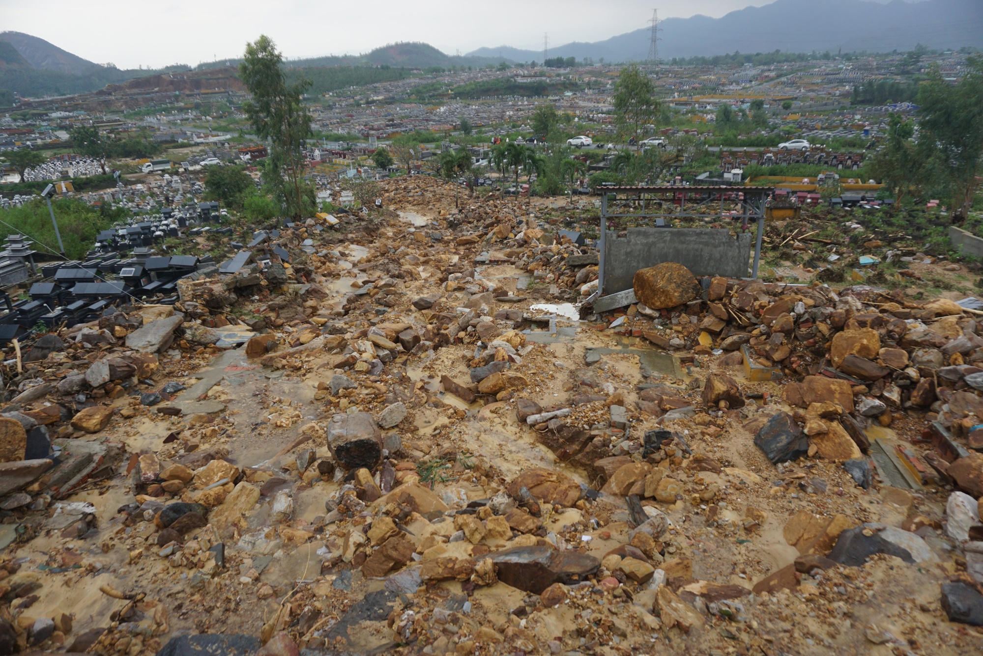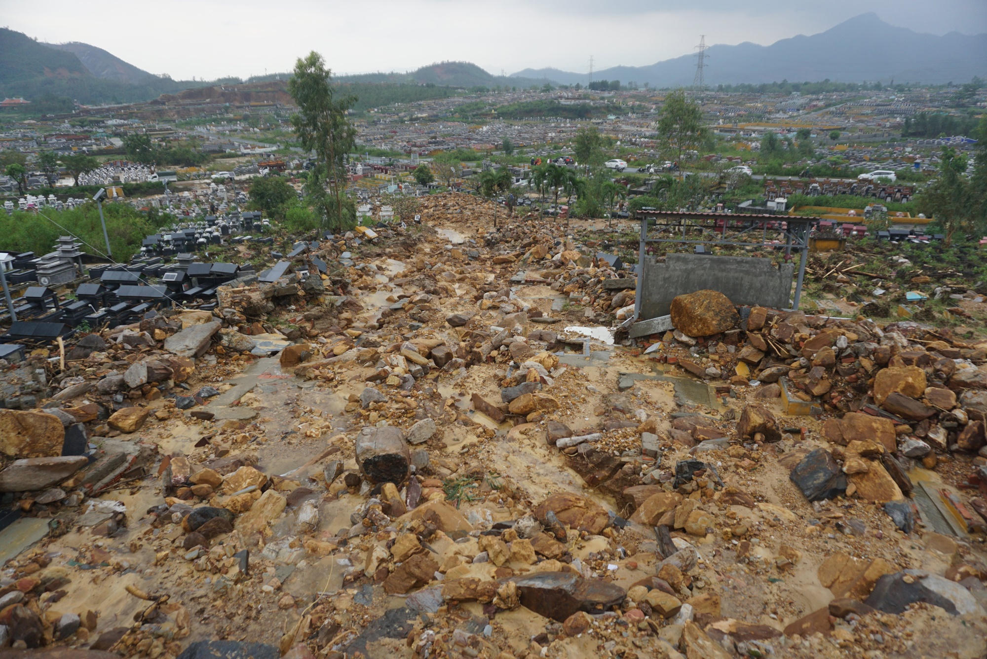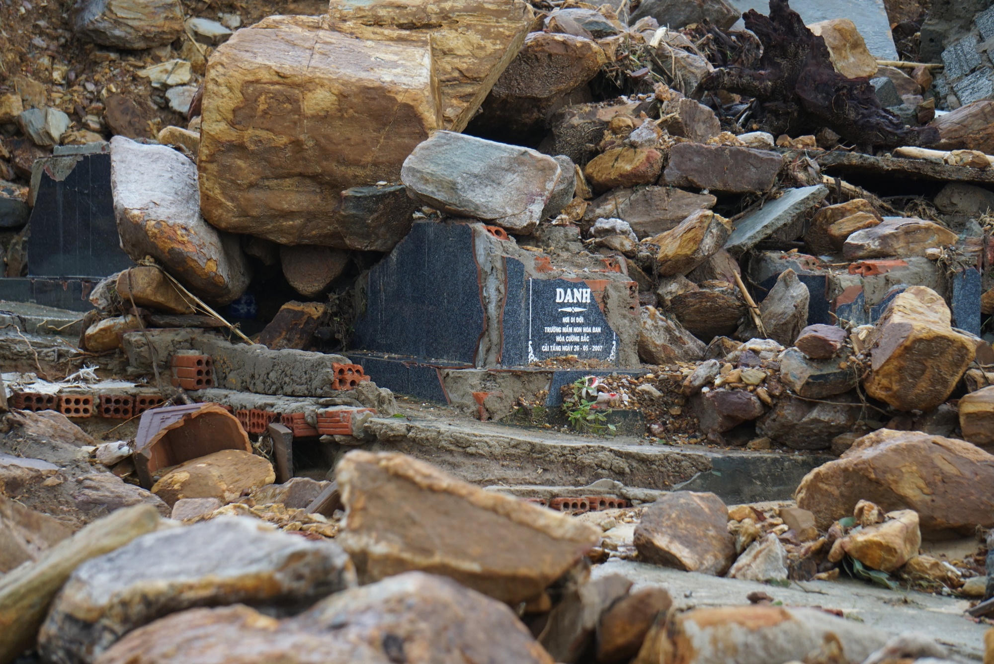 Hàng nghìn m3 đất đá từ trên núi sạt lở, tràn xuống khu vực này khiến hàng nghìn ngôi mộ bị vùi lấp.