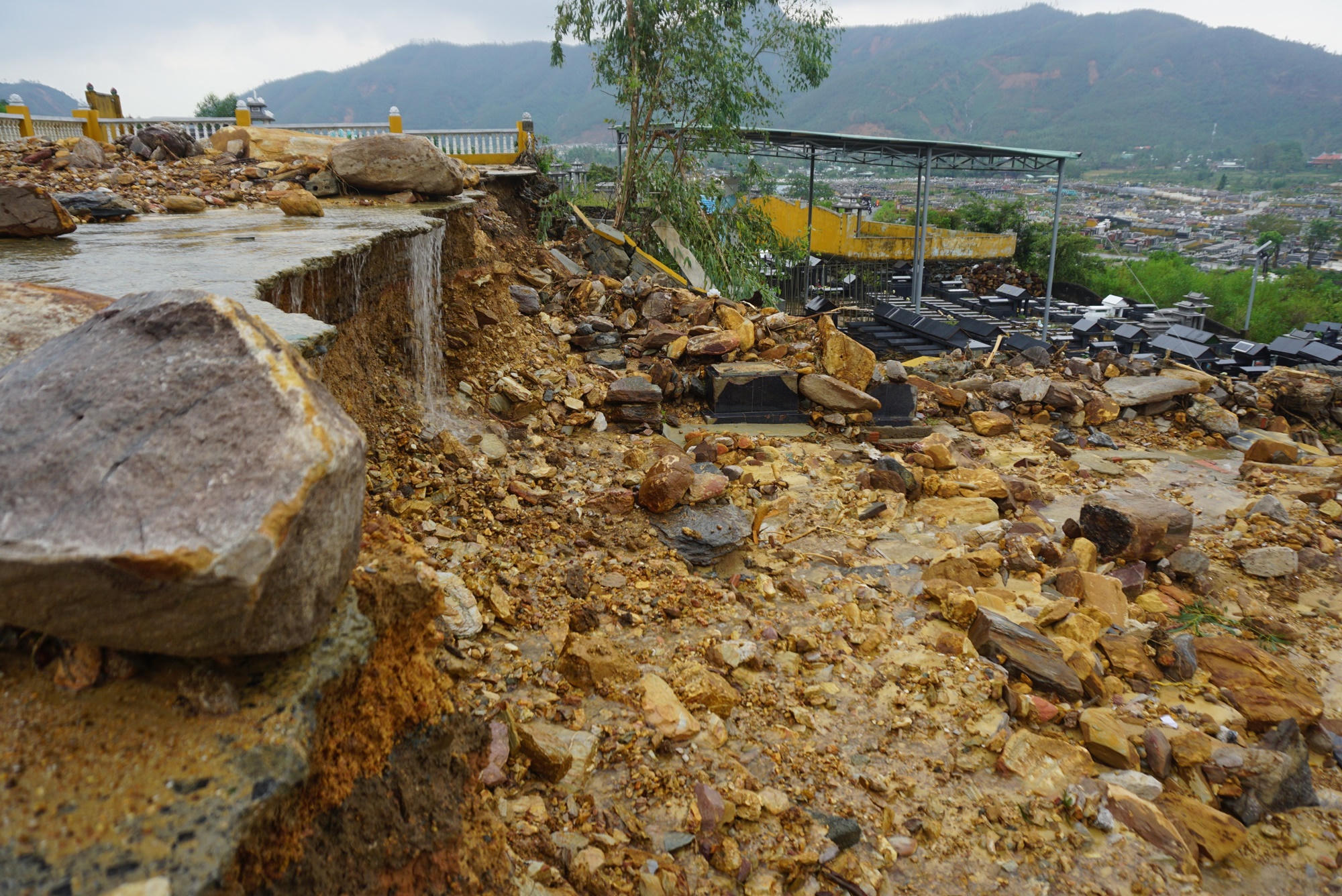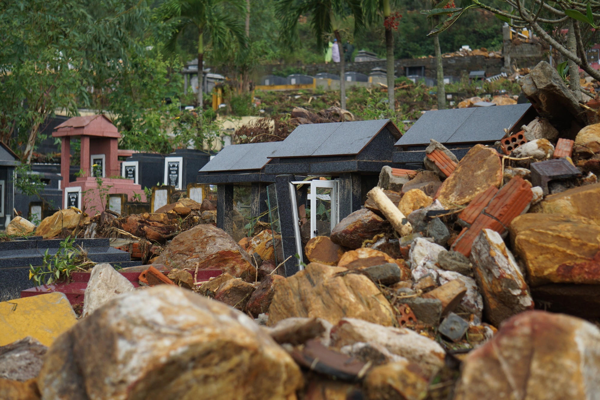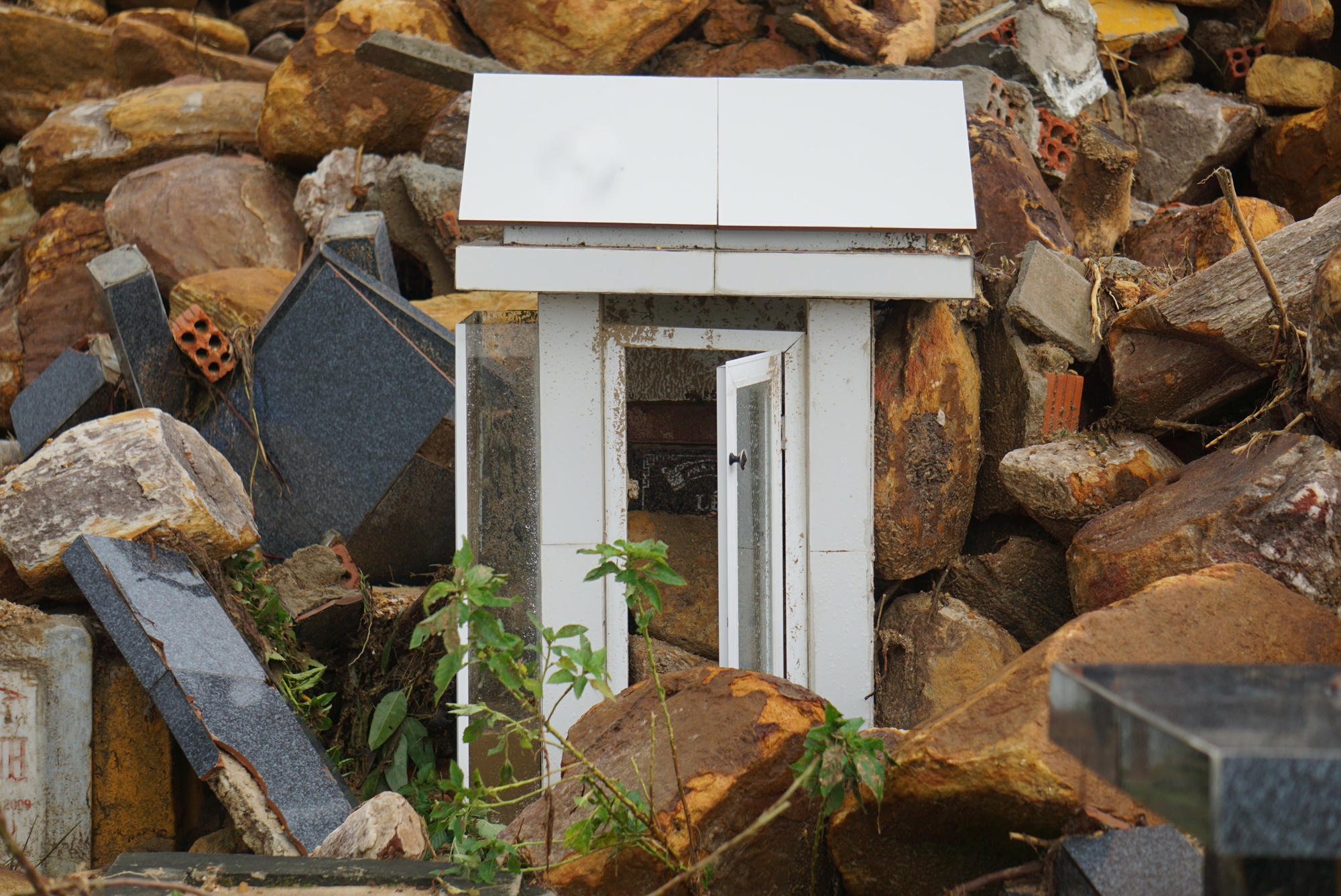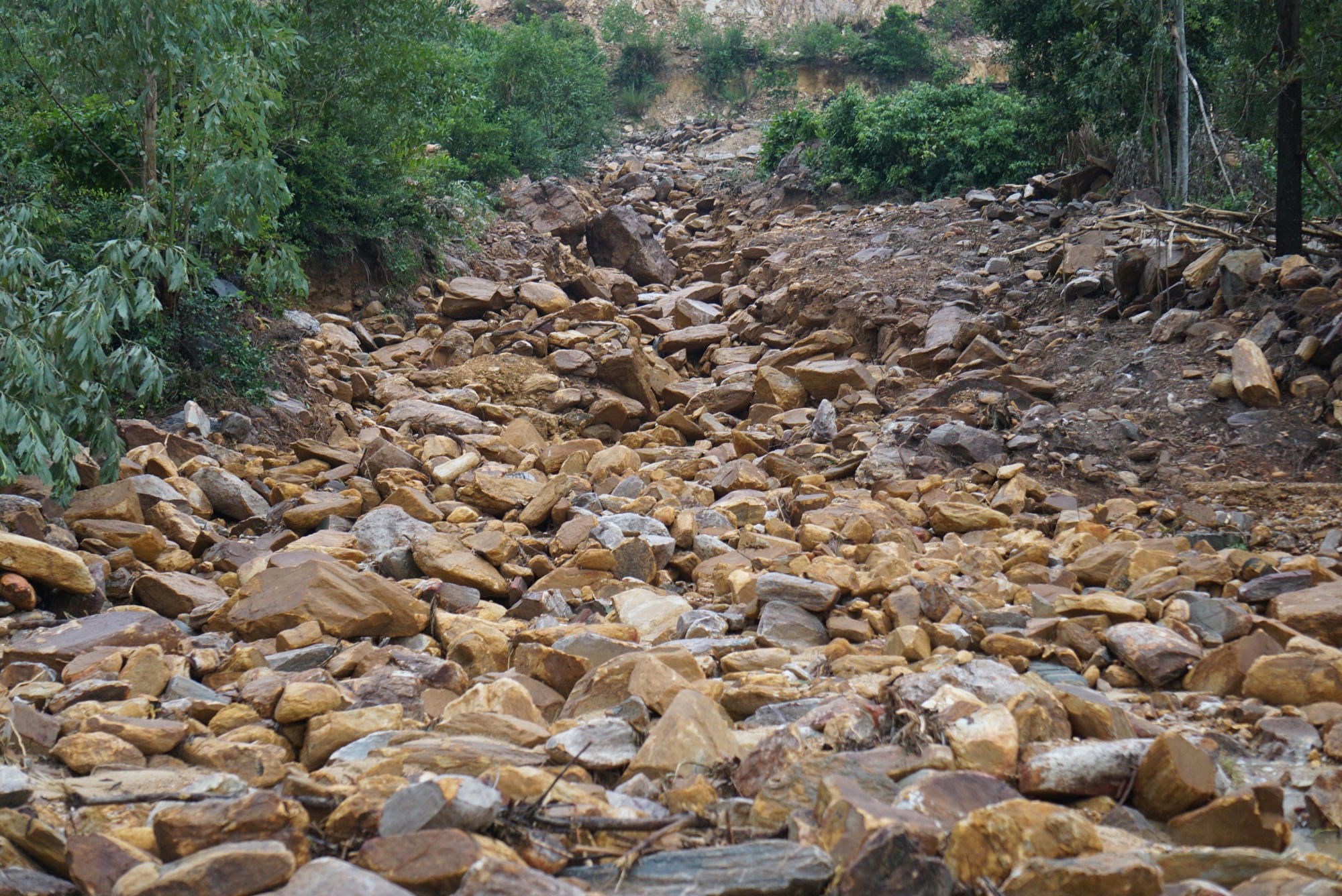 Hàng nghìn m3 đất đá từ trên núi sạt lở, tràn xuống khu vực này khiến hàng nghìn ngôi mộ bị vùi lấp.