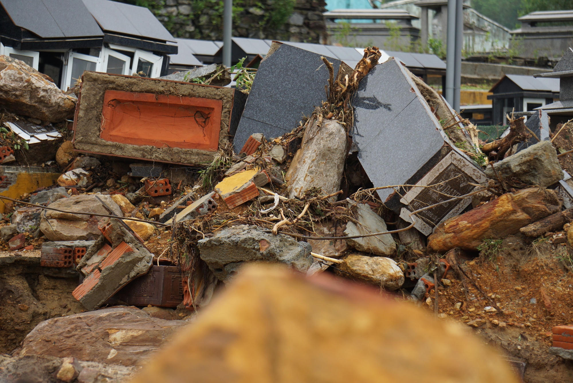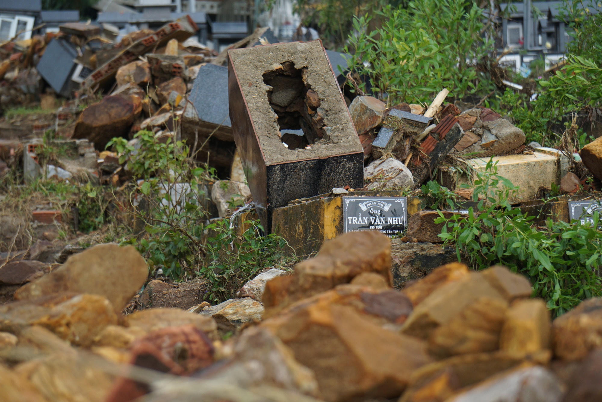 Theo ghi nhận, tại nghĩa trang này có ít nhất 3 điểm ở bị sạt lở nghiêm trọng, khiến hàng ngàn ngôi mộ tại đây bị đất đá tràn xuống cuốn trôi, vùi lấp.