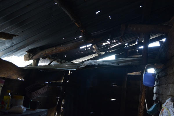 Chỉ lên mái tôn chi chít những lỗ thủng to như quả chanh, chị Thúy buồn rầu cho biết: “Đó là hậu quả từ trận mưa đá hồi đầu tháng 5 vừa qua. Mái tôn này cũng đã cũ lắm rồi, tôi cũng định ráng dành dụm tiền để vài năm nữa sửa lại nhưng mưa đá lại làm thủng mất. Tiền ăn hàng ngày đã khó, lấy tiền đâu mà sửa nhà”, chị Thúy than thở.