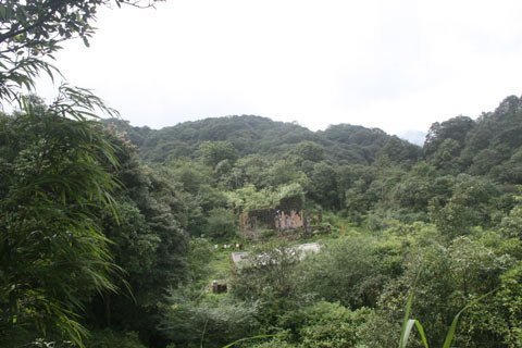Càng vào sâu trong rừng Phia Oắc, không khí càng trở nên lãnh lẽo, những gốc cây cổ thụ rêu phủ xanh rì từ gốc lên ngọn dần hiện ra. Chúng tôi lọt thỏm vào một thung lũng nhỏ, bằng phằng ở giữa rừng. Tại đây, dấu vết về những biệt thự cổ bất ngờ hiện ra.