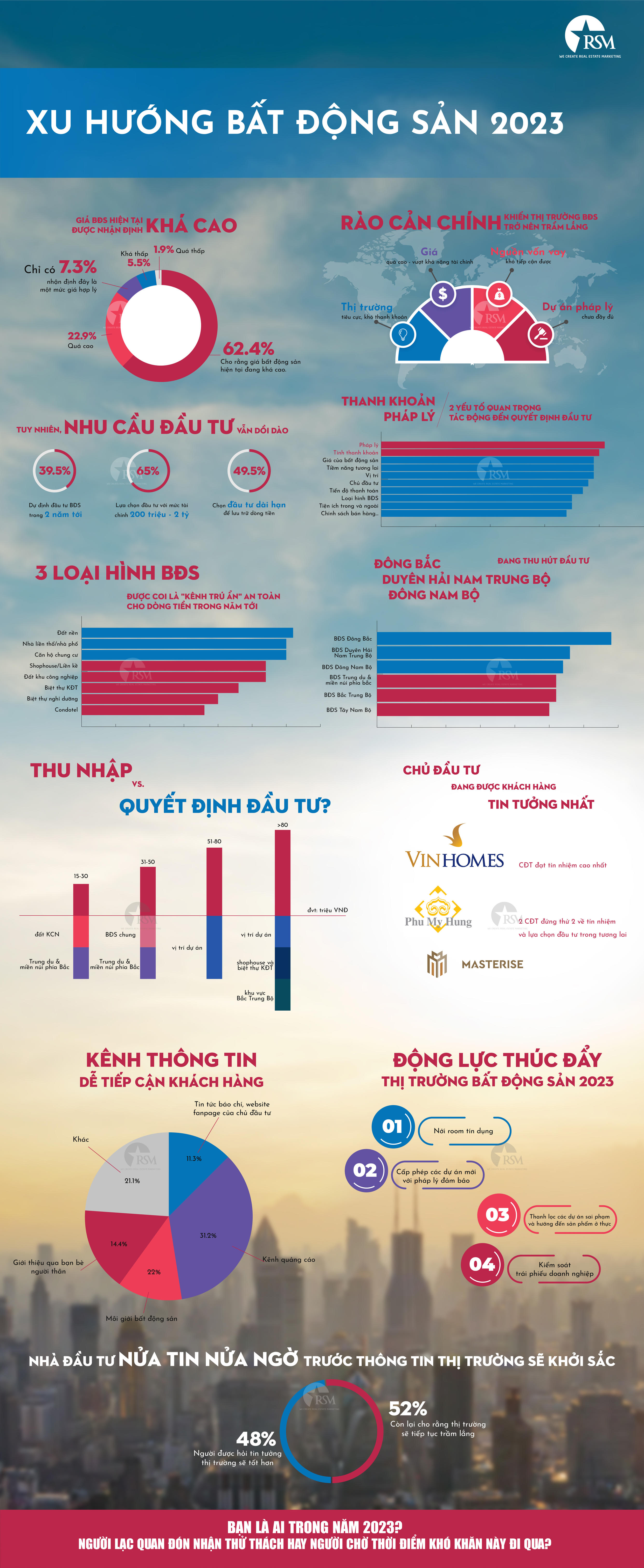 (PLVN) - RSM Agency đã công bố kết quả khảo sát về Xu hướng bất động sản 2023 với nhiều thông tin đáng chú ý. Mặc dù còn khá nhiều rào cản song nhu cầu đầu tư thực tế vẫn cao.