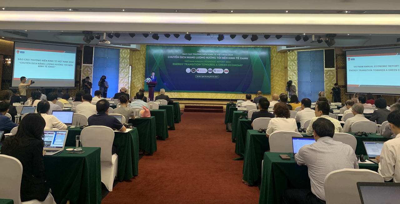 Báo cáo thường niên kinh tế Việt Nam 2024 với chủ đề "Chuyển dịch năng lượng hướng tới nền kinh tế xanh" đã nhận định tổng quan kinh tế Việt Nam năm 2023 và gần nửa đầu năm 2024: về tăng trưởng kinh tế, lạm phát, các thị trường tiền tệ, tín dụng, tài chính, lao động và năng lượng; Đánh giá mối quan hệ giữa chuyển dịch năng lượng tái tạo và tăng trưởng kinh tế; Nghiên cứu kinh nghiệm quốc tế ở các quốc gia như Anh, Đức, Trung Quốc về chuyển dịch năng lượng tái tạo và đưa ra giải pháp thúc đấy chuyển dịch năng lượng tái tạo tại Việt Nam...