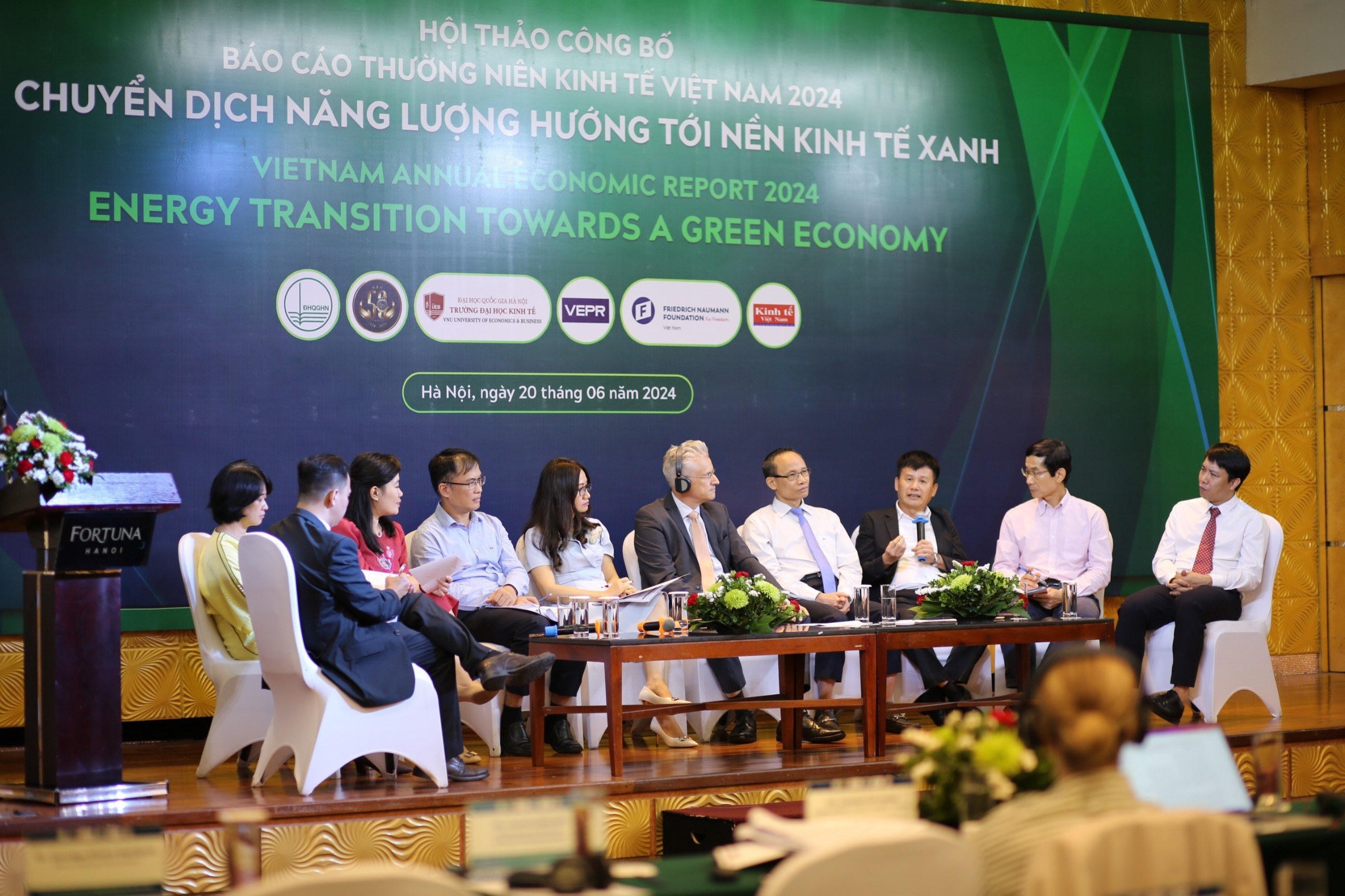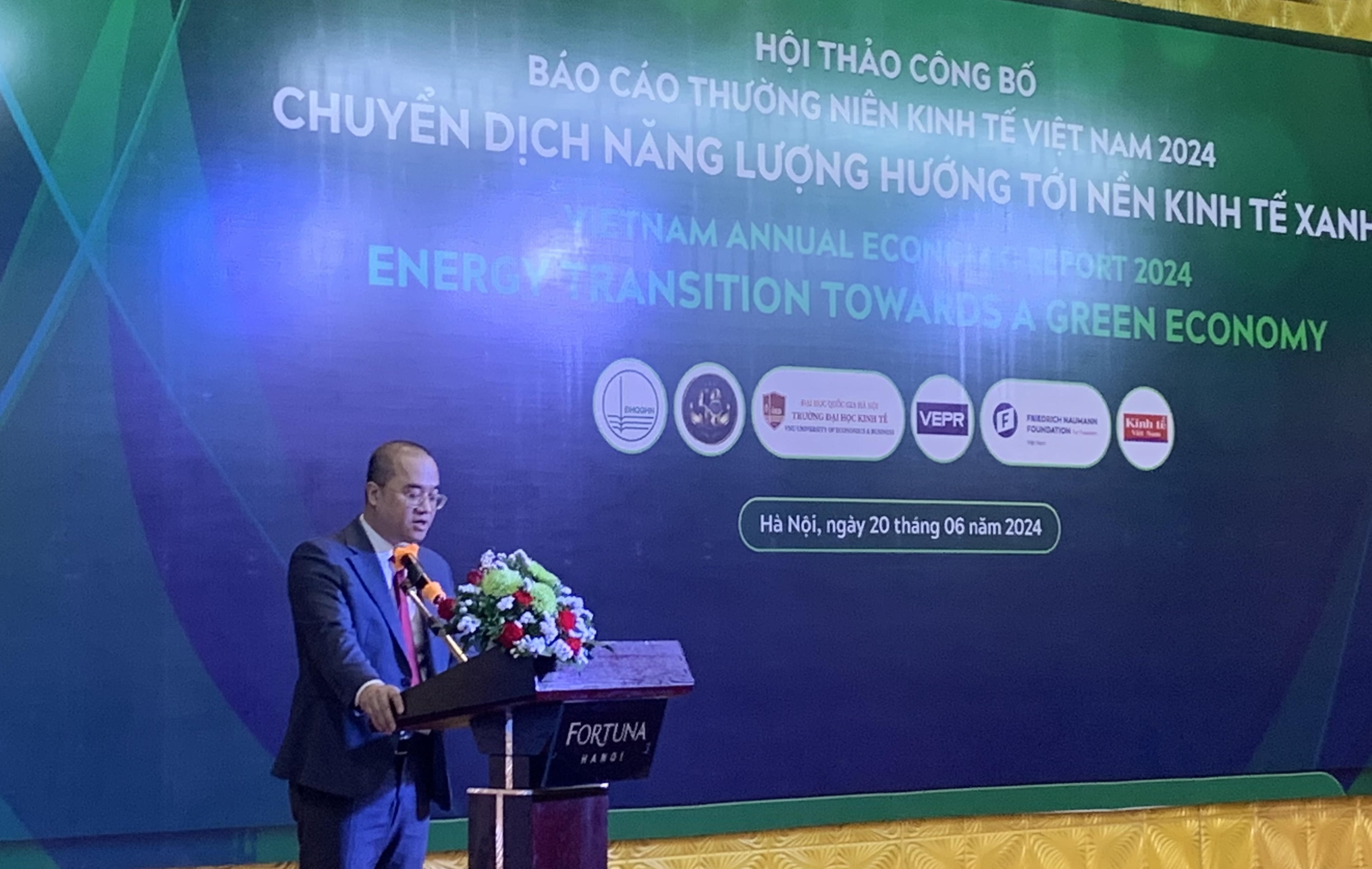 Sáng 20/6, tại Hà Nội diễn ra Hội thảo Công bố báo cáo Kinh tế thường niên Việt Nam 2024 (BCKTTN 2024) với chủ đề “Chuyển dịch năng lượng hướng tới nền kinh tế xanh”. Hội thảo do Viện nghiên cứu Kinh tế và Chính sách (VEPR) trực thuộc Trường Đại học Kinh tế - ĐHQGHN phối hợp với Viện Friedrich Naumann Foundation (FNF) Việt Nam tổ chức.