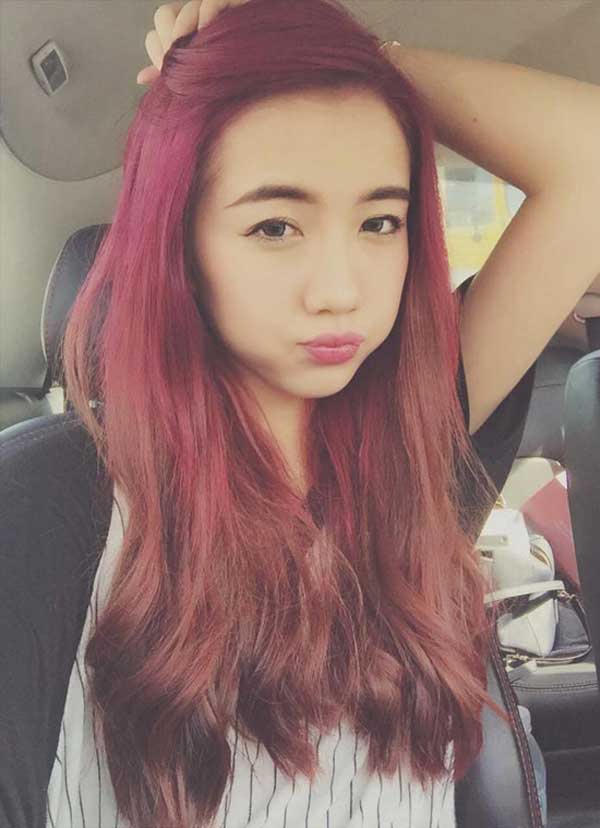 Dù màu đỏ khá kén da nhưng vẫn được các bạn gái ưa chuộng. Khi lựa chọn màu tóc này bạn cần sự tinh tế khi trang điểm, vì màu đỏ đã rất nổi bật nên bạn chỉ cần trang điểm nhẹ, như vậy đã giúp bạn thêm phần trẻ trung và duyên dáng.