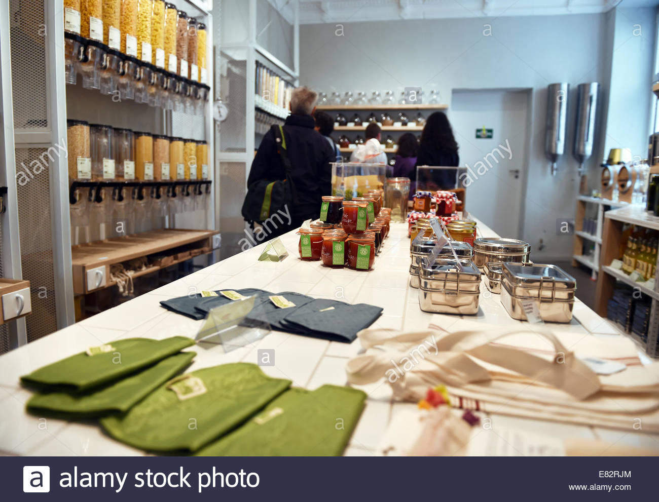 Tại cửa hàng có bày bán một loạt các mặt hàng khô, như ngũ cốc, hạt, snack và đậu; các mặt hàng bánh ngọt; mật ong, dầu ô liu; đồ dùng vệ sinh, chất tẩy rửa; các chế phẩm từ sữa; và các mặt hàng đồ nguội - tất cả đều không đóng gói.