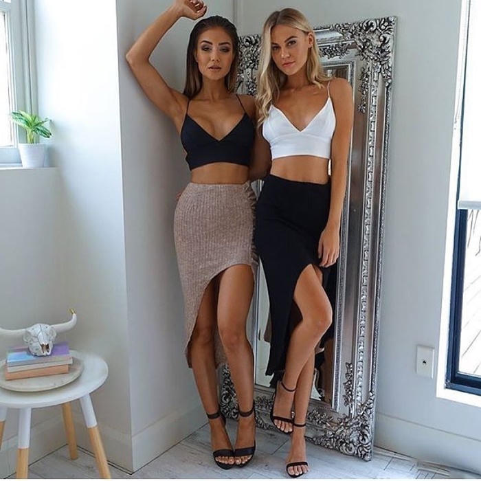 Đây là item không thể thiếu với những cô nàng quyến rũ. Chân váy xẻ tà giúp bạn gái khoe đường cong cơ thể và đôi chân thon thả, gợi cảm. Bạn có thể kết hợp chân váy với áo sơ mi, áo vest, áo thun, giày cao gót,… tạo dáng vẻ thanh lịch và sang trọng.