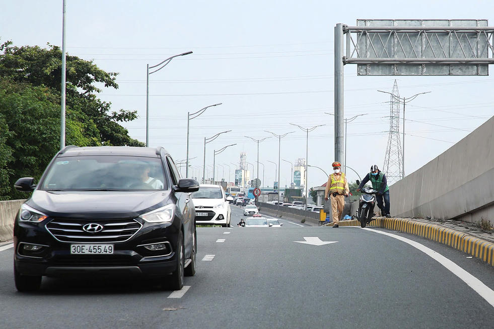 Xử lý nghiêm lái xe vi phạm trên đường dẫn cầu Thăng Long