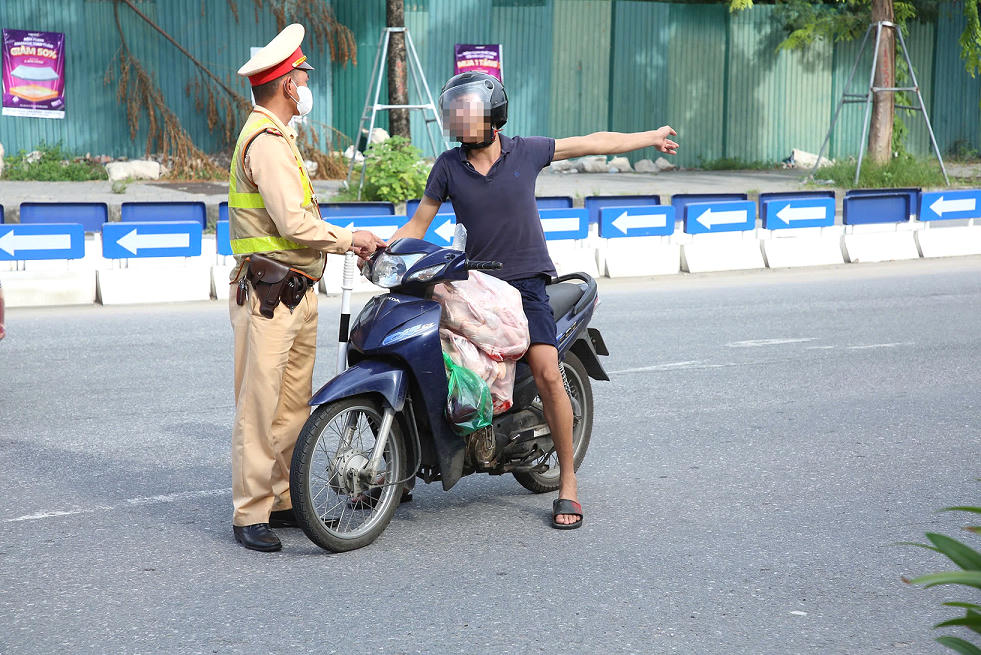 7h ngày 22/8, Tổ công tác CSGT kiểm tra một tốp tài xế xe ôm đang dừng đỗ tại đầu cầu Thăng Long (điểm nối với đường vành đai 3 trên cao, hướng về cầu Mai Dịch). Tài xế Đ.V.T. (SN 1974, trú tại quận Bắc Từ Liêm, Hà Nội) trình bày, bản thân biết khu vực đầu cầu Thăng Long có biển cấm xe máy, người đi bộ lên nhưng vì mưu sinh nên cố tình đứng bắt khách.