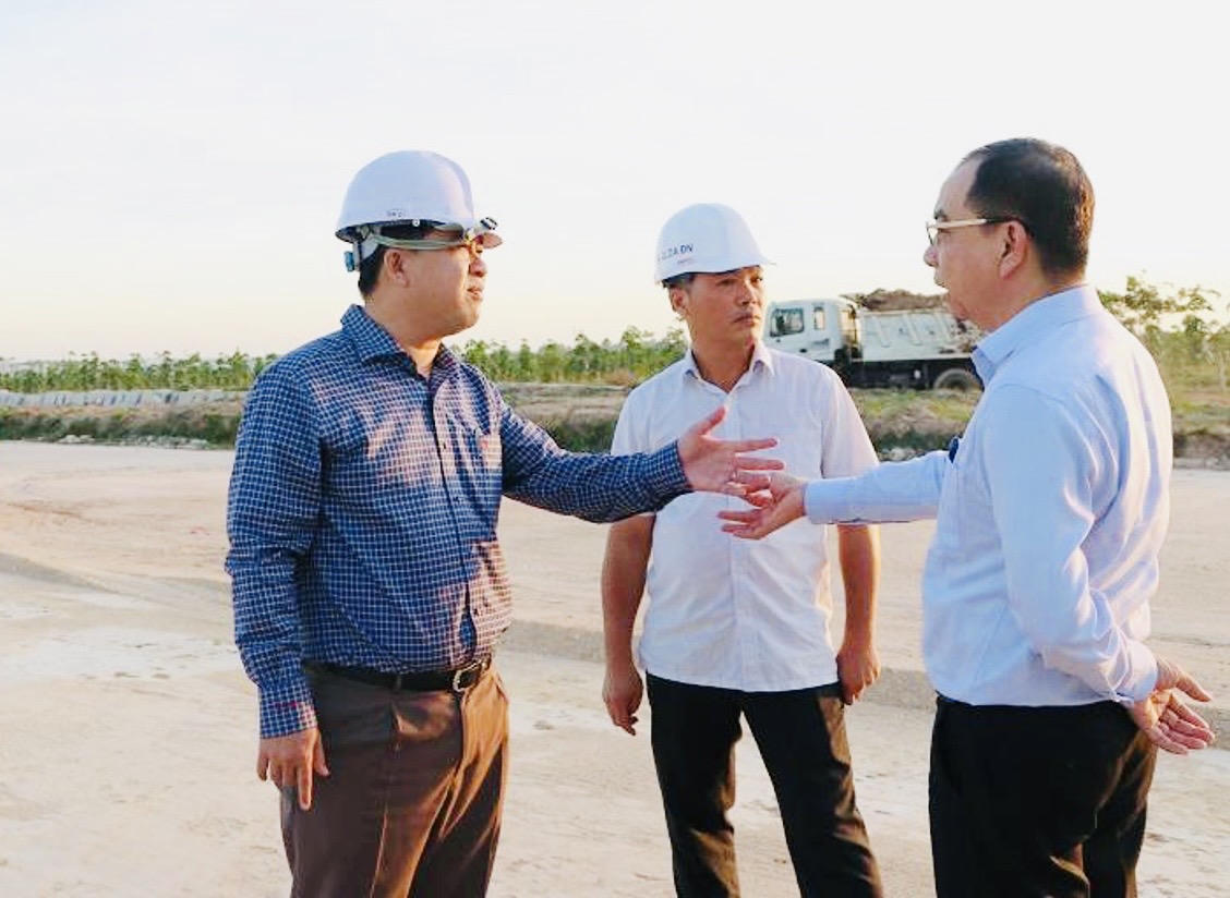 Phó chủ tịch UBND tỉnh Đồng Nai Hồ Văn Hà kiểm tra công trường thi công chiều ngày 3/4. |