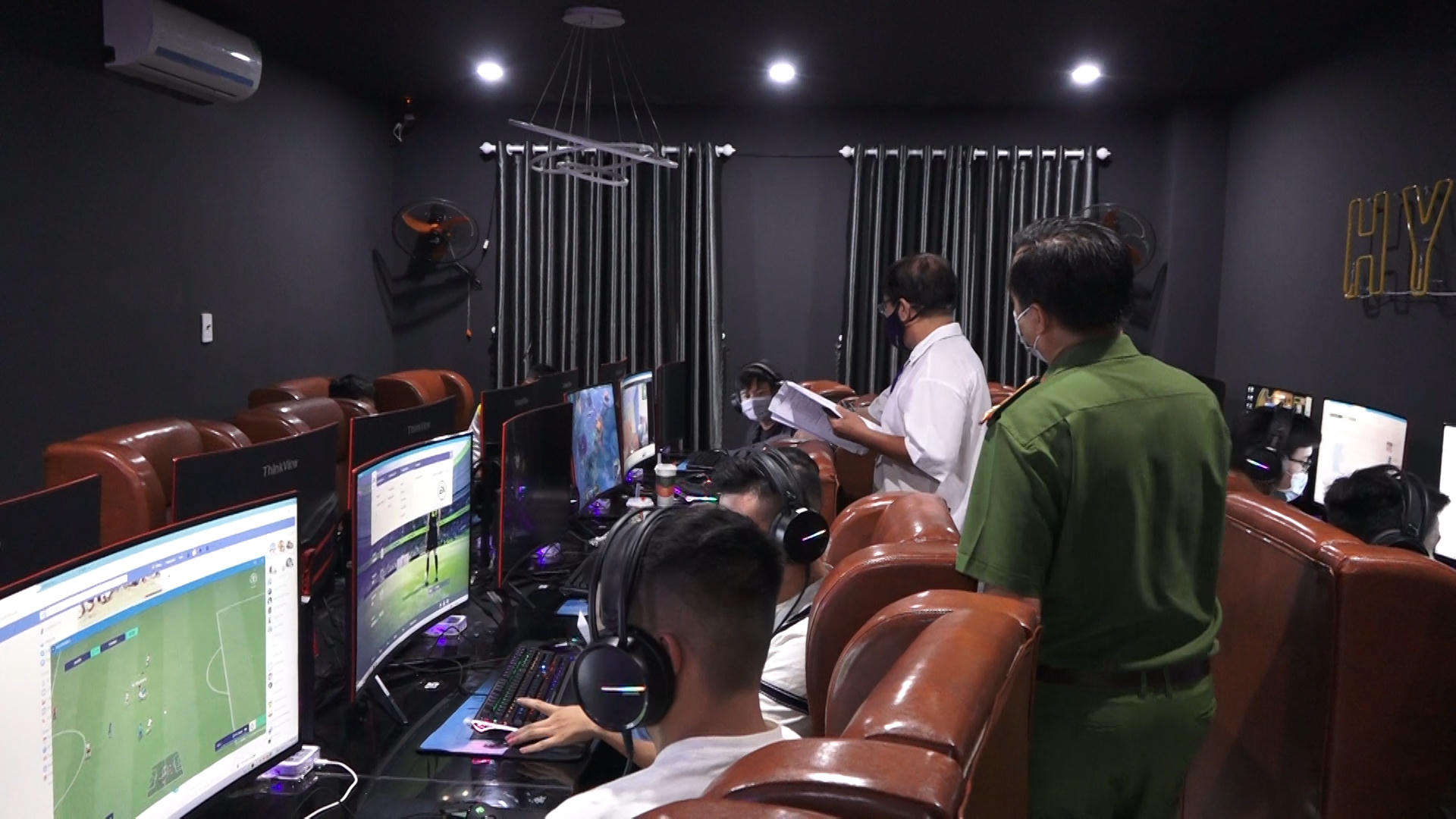 Mặc dù bên ngoài đóng cửa nhưng vào bên trong thì lực lượng chức năng phát hiện có 12 người đang chơi game. Chủ yếu là các thanh, thiếu niên. Tất cả các game thủ này đều phải khai báo y tế.