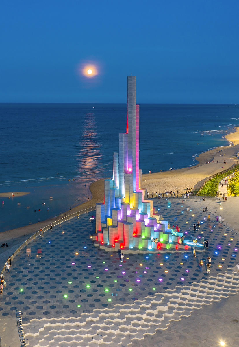 Ban đêm, Tháp Nghinh Phong được chiếu sáng tạo nên vũ điệu ánh sáng đa sắc màu. (Ảnh: Viễn Duy) |