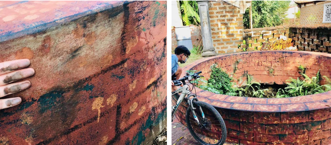 Giếng cổ ở đình Mông Phụ của làng cổ Đường Lâm bị đoàn làm phim vẽ lên thành giếng tạo bối cảnh. Ảnh: BQL Làng cổ Đường Lâm