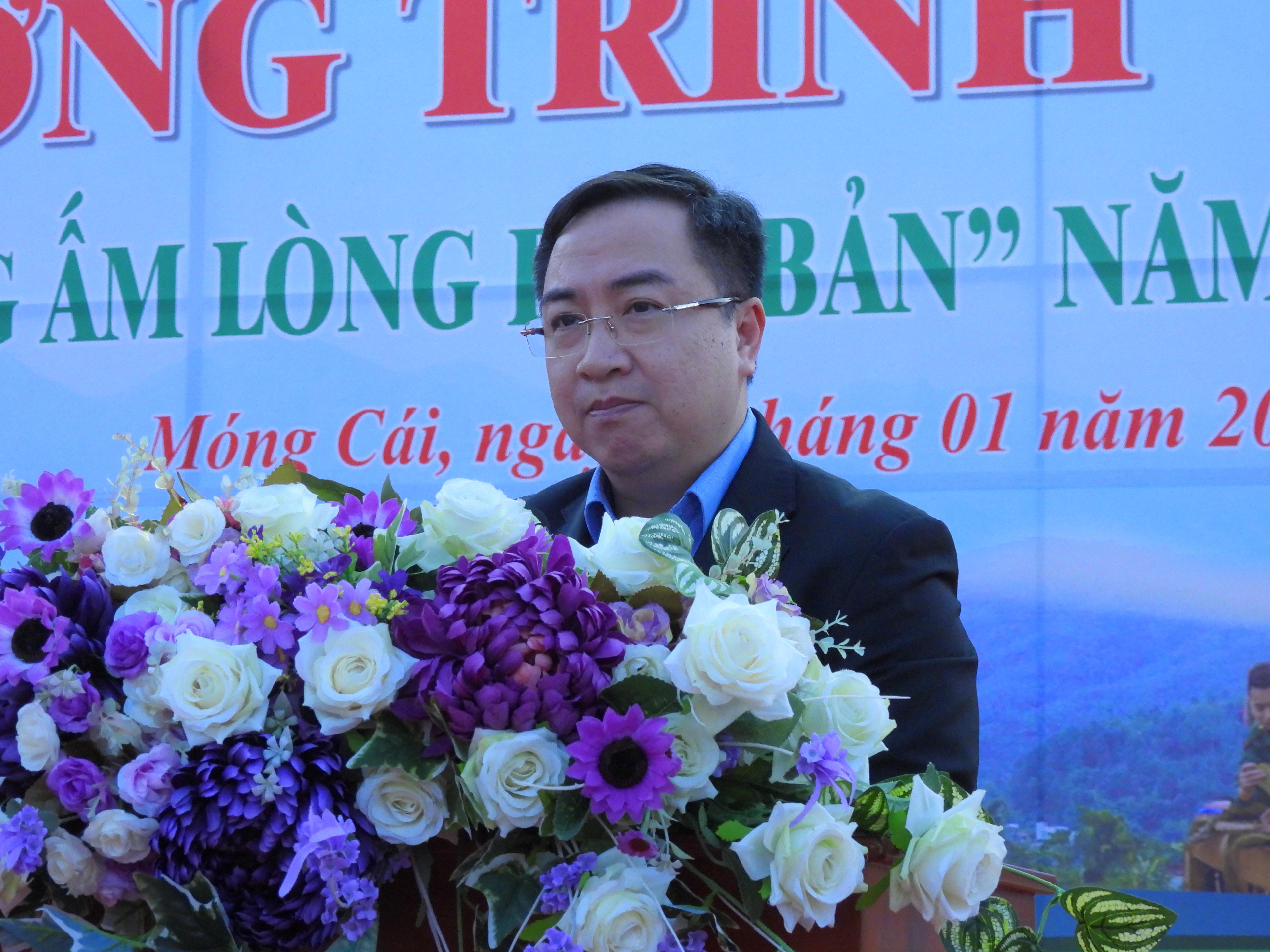 Phó Bí thư Tỉnh ủy Quảng Ninh đề nghị bà con Nhân dân khu vực biên giới nỗ lực cố gắng hơn nữa trong cuộc sống, xây dựng kinh tế gia đình ngày càng vững chắc, địa phương ngày càng giàu đẹp, văn minh, cùng bộ đội Biên phòng Quảng Ninh góp phần xây dựng nền Biên phòng toàn dân vững mạnh, thế trận Quốc phòng toàn dân gắn với thế trận an ninh nhân dân, thế trận “Lòng dân” vững chắc, tham gia quản lý, bảo vệ vững chắc chủ quyền an ninh biên giới của Tổ quốc, tạo điều kiện thuận lợi để thành phố Móng Cái và tỉnh Quảng Ninh cùng cả nước bước vào kỷ nguyên mới.