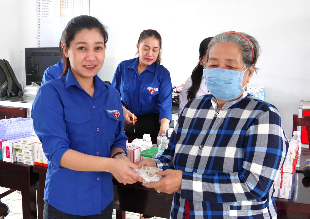Đoàn thanh niên phối hợp với Bộ đội Biên phòng Cà Mau đến khám bệnh, cấp thuốc miễn phí cho người dân Chương trình “Xuân Biên phòng ấm lòng người dân biển” năm 2023. |