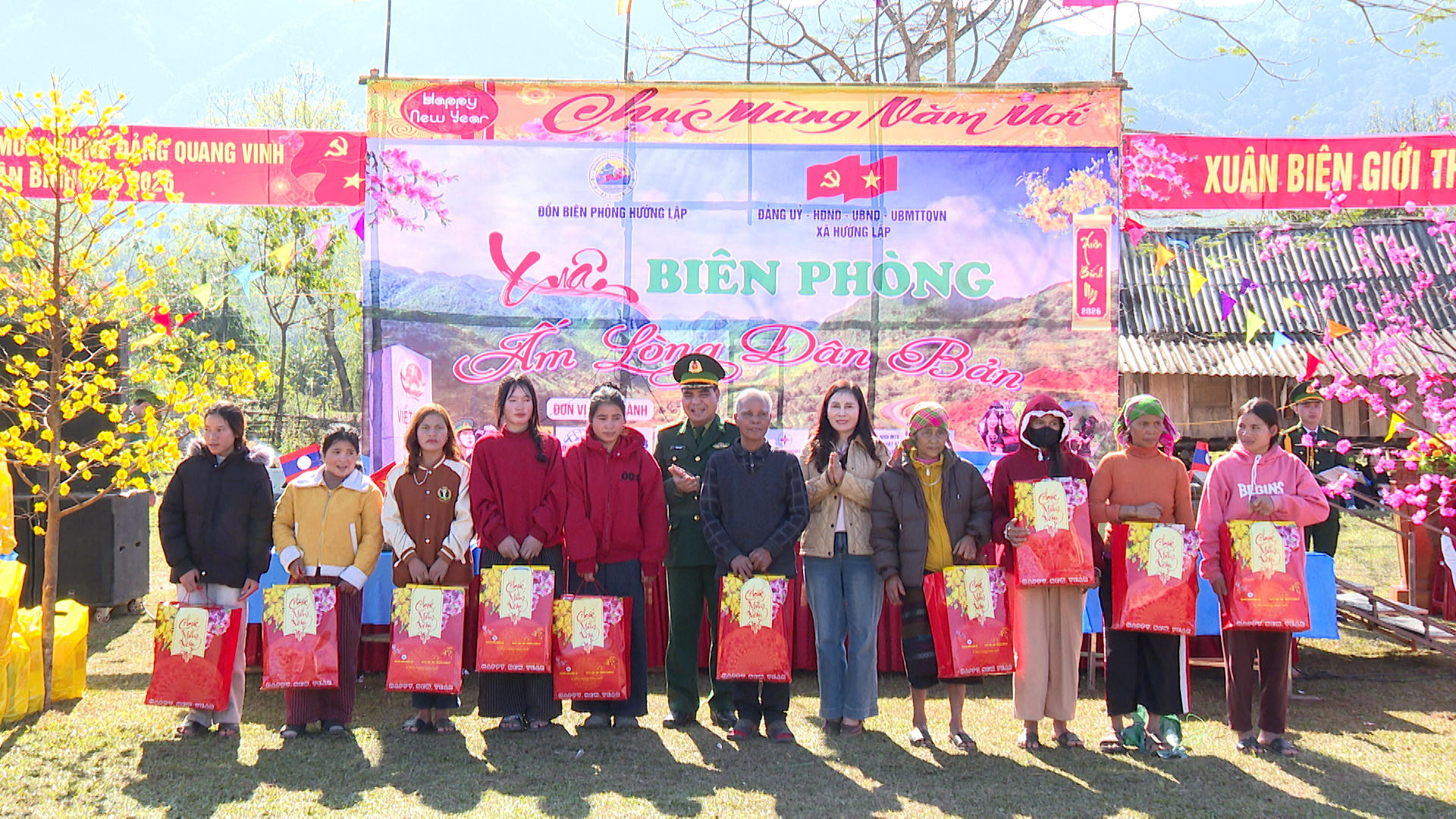 Đặc biệt, trong chương trình, Ban tổ chức đã trao tặng gần 1.200 suất quà Tết cho các gia đình chính sách, hộ nghèo, hộ có hoàn cảnh đặc biệt khó khăn, người già neo đơn trên địa bàn các xã biên giới và các bản ngoại biên đối diện. Ngoài ra, 11 em học sinh trong Chương trình “Nâng bước em tới trường - Con nuôi Đồn Biên phòng” cùng các em học sinh thuộc Dự án “Cán bộ, chiến sĩ Quân đội nâng bước em tới trường” cũng được nhận những phần quà ý nghĩa, tiếp thêm động lực vươn lên trong học tập.