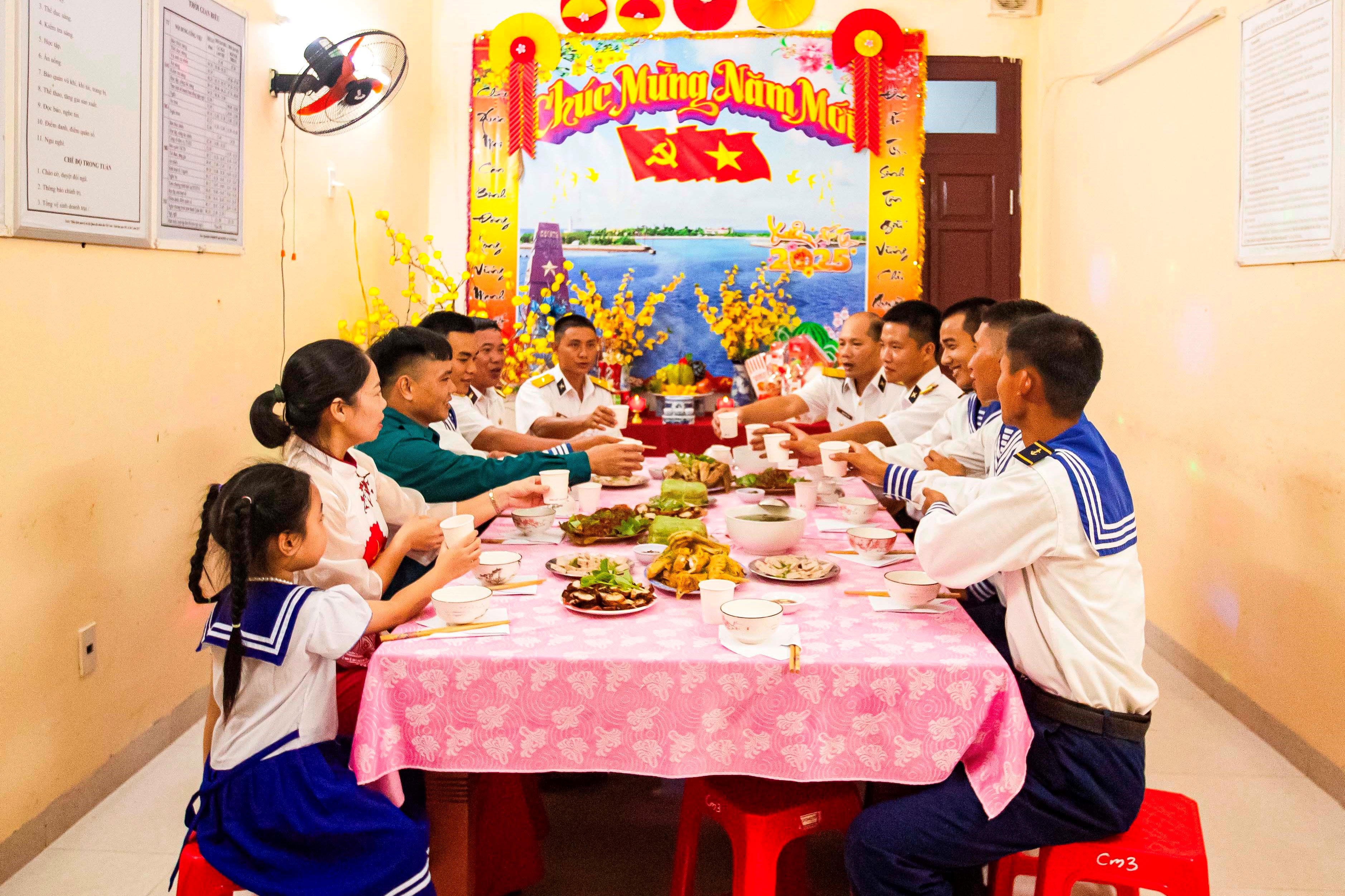 Bữa cơm sum vầy của một gia đình trên đảo Sinh Tồn trước thềm Xuân mới. Ảnh: NSNA Nguyễn Thanh Hải |